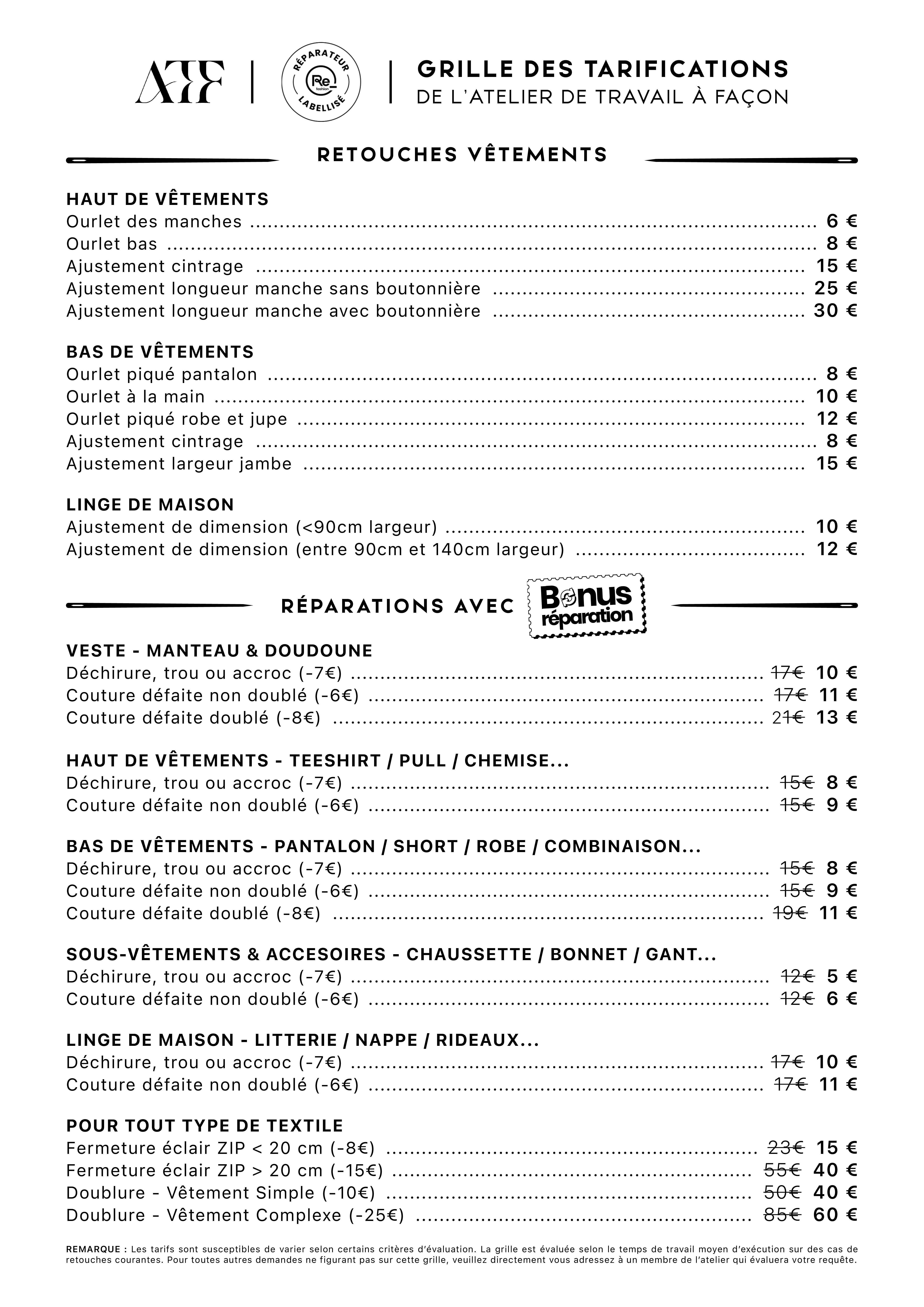 TARIFS RETOUCHES